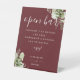 Rosewood Pink Elegant Greenery Floral Open Bar Pedestal Sign