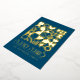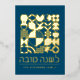 Rosh Hashana REAL GOLD FOIL Modern Geometric Pattern Card. Rosh Hashana Symbols + Space to add your personal greeting on the reverse. Hebrew on the front says "L'shana Tovah ". Hebrew inside says "You should be written down for a good year". A beautiful way to wish friends, family and clients, a Shanah Tovah- A happy and sweet Jewish New Year. If you want to see a variation of this design, please message us or email bestdressedbread@gmail.com.