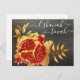 Rosh Hashanah Red Gold Watercolor Pomegranate Grey Holiday Postcard