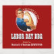 Stylish Rosie the Riveter LABOR DAY BBQ beer bottle labels, with deep red background. The design shows the iconic Rosie appearing inside a white circle, with bold typography.. TEXT IS CUSTOMIZABLE so you can add the host name(s) and event details. These Labour Day Barbecue beer bottle labels are a stylish addition to your summer party decor and a great way to help celebrate the Labour Day weekend with your friends and family.
