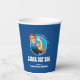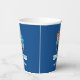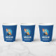 Stylish Rosie the Riveter LABOR DAY BBQ paper cups, with mid blue background. The design shows the iconic Rosie appearing inside a light cyan blue circle, with bold typography.. TEXT IS CUSTOMIZABLE so you can add the host name(s) and event details. These Labor Day Barbecue paper cups are a stylish addition to your summer party tableware and a great way to help celebrate the Labor Day weekend with your friends and family.
