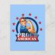 Patriotic Rosie the Riveter design featuring a beautiful Rosie surrounded by stars. Text says PROUD AMERICAN. Perfect for the 4th of July or anytime on T-shirts and gifts. PinkInkArt original!