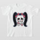 Girl's pirate skull and crossbones emblem, with ponytails in pink bows, rosy cheeks and lots of piratitude. Colour, t-shirts, sweats, cards, buttons, gifts.