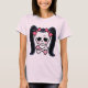 Girl's pirate skull and crossbones emblem, with ponytails in pink bows, rosy cheeks and lots of piratitude. Colour, t-shirts, sweats, cards, buttons, gifts.
