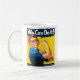 Lacking motivation? In need of a little girl power? Try this retro look Rosie the Riveter themed mug for size. The design on the mug features the iconic Rosie the Riveter, star of a vintage American WW2 poster, flexing her mighty muscles saying "We Can Do It!" to her sister Americans, as she urgeswomen to work in factories to help the war effort. The famous poster by artist J Howard Miller shows Rosie dressed in her trademark blue overalls and red and white polkadot Forties' headscarf.