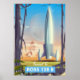 Ross 128 B Science fiction poster of a rocket ship sitting on the surface of the planet during a alien setting sun.
