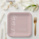 Rotated Calligraphy Name Dusty Rose Oh Baby Shower Paper Plate