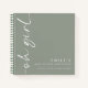 Rotated Script Sage Oh Girl Shower Guest Book Oh Girl is stylishly rotated and to the left. Easily personalise the rest of the text on the front and back to your own details. Text and background Colours can be changed if you wish via the Edit further button.