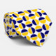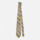 A tie with an attractive geometric design made up of divided circles with two toned halves each motif is rotated 90 degrees to the previous one creating an interesting and dynamic modern pattern.