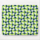 An attractive geometric design made up of divided circles with two toned halves each motif is rotated 90 degrees to the previous one creating an interesting and dynamic modern pattern.