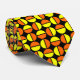 A tie with an attractive geometric design made up of divided circles with two toned halves each motif is rotated 90 degrees to the previous one creating an interesting and dynamic modern pattern.