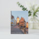 This postcard features a photograph taken in the evening at blue hour of the Plönlein in Rothenburg ob der Tauber, Franconia, Bavaria, Germany.