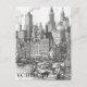 This travel postcard, in hand drawn sketch-style, showcases the skyline of Rotterdam.