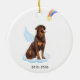 Celebrate your best friend with a custom Rottweiler angel memorial ornament. This Rottweiler christmas memorial ornament features a watercolor Rottweiler dog with angel wings and a rainbow and shooting gold star. Personalize with name front, dates back . This Rottweiler memorial ornament is a perfect dog remembrance keepsake or pet christmas memorial keepsake. COPYRIGHT © 2022 Judy Burrows, Black Dog Art - All Rights Reserved. Rottweiler Angel Personalized Dog Pet Memorial Ceramic Ornament