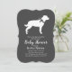 Include the big brother or sister fur baby in the celebration with this adorable Rottweiler dog baby shower design! Perfect for a puppy lover with a baby on the way. The Rottie is next to an adorable vintage carriage. The chalkboard grey background makes it perfect for a gender neutral or co-ed shower!
