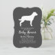 Include the big brother or sister fur baby in the celebration with this adorable Rottweiler dog baby shower design! Perfect for a puppy lover with a baby on the way. The Rottie is next to an adorable vintage carriage. The chalkboard grey background makes it perfect for a gender neutral or co-ed shower!