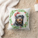 Holiday Christmas pillow with a watercolor Rottweiler and watercolor Christmas wreath design. Add the dogs name to the design and it's the perfect gift idea for that lab lover you know, or yourself!