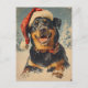 Wishing you a festive season filled with joy and warmth! This Christmas card features a loveable Rottweiler, donning a Santa hat with a twinkle in its eye. The playful canine spirit brings a touch of holiday cheer, promising a season of merriment and tail-wagging happiness. Share in the joy as this festive friend spreads Christmas magic, making your celebrations extra special.
