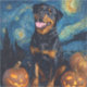 Rottweiler Cute Dog Halloween Jack O Lantern Pumpkin Face Starry Night Van Gogh
