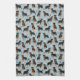 Cute Rottweiler dogs sit and stand with black and tan coats with scattered dog bones and pawprints pattern.