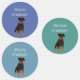 Rottweiler colours waterproof name labels features a cute dog with your child's (or other names/words). You may choose to have up to 3 different names/words with this item (i.e. 3 different kids). PLEASE CONTACT me to request more than one dog on a label (i.e. German Shepherd with Beagle, etc.) Other breeds/colours are available. Please see collection.