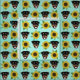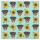 Rottweiler dog faces sunflowers mint fabric