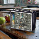 This is a standard metal lunchbox that appears to work just fine. We designed this box ourselves with an uploaded photo and custom text on the front and back. It looks absolutely beautiful except the front of the lunchbox is not centered like it shows in the photo. The print borders don't align with the inset flat part of the box where the preview photo online showed it perfectly centered in there. The back looks nice and centered though.