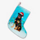 Rottweiler Dog in Snow With Santa Hat Lights Small Christmas Stocking