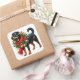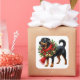 A cheerful Rottweiler stands proudly with a vibrant holiday wreath around its neck, featuring red and green holly leaves, bright red bows, and golden bells. The dog exudes a joyful spirit, reflecting the warmth and joy of the Christmas season.