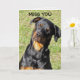 This precious "Get Well Soon" greeting card features our loveable and adorable Rottweiler named Heidi. The front of the card shows Heidi with her head cocked in a comical way and her soft brown eyes looking into your own. The front of this card reads, "Miss you" and the inside reads "Get well soon please." With Heidi's sweet face, this card is sure to make anyone start feeling better.