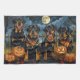 Unleash the spooky spirit with this eerie Halloween design featuring a pack of dogs under a dark, moonlit sky, surrounded by flying bats and glowing pumpkins. Perfect for those who love a touch of frightful fun with their furry friends!