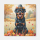 Rottweiler In Autumn Leaves Thanksgiving Art Magnet