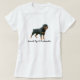 I love the red, its perfect! The lettering and image is sharp. Gorgeous Rottie! Good choice. The material is comfortable and the fit is flattering. Its feminine. I got a medium shirt and I wouldn't say it runs small but I normally get a small in tops. The shirt has some give, which is what I wanted, so I'm glad I got a medium. I think small would've been too tight. Crisp, stands out, just like on the site. Good job!