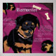 Poster of digital art painting of Rottweiler pup with Rottie info including history, characteristics and size