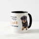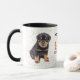 "Rottweiler puppy kisses fix everything" declares this cute mug for the Rottie owner. The image on each side is a portrait of an adorable black and tan Rottweiler puppy. The images and text are placed on a white background that is sprinkled with gold confetti.