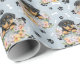 An adorable little Rottweiler puppy laying in a flower decorated wicker basket is the feature in the pattern on this all occasion gift wrapping paper. The portrait is amid a pattern of black paw prints and white bones, and is repeated on a silver blue background. Perfect for any Rottweiler Dog lover!