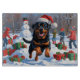 A powerful Rottweiler runs happily through the snowy winter scene, wearing a festive red Christmas hat. This bold design highlights the breed’s strong build, loyal nature, and confident personality while capturing the warmth and joy of the holiday season. A striking winter moment full of festive cheer.