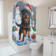 Rottweiler Running in Snow with Christmas Hat Shower Curtain