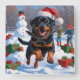 A powerful Rottweiler runs happily through the snowy winter scene, wearing a festive red Christmas hat. This bold design highlights the breed’s strong build, loyal nature, and confident personality while capturing the warmth and joy of the holiday season. A striking winter moment full of festive cheer.