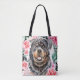 Rottweiler watercolor dog face rose wreath art tote bag