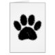 A black dog paw print cartoon style. Design with distressed effect applied to image. Product and gift idea for people that love dogs.