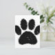 A black dog paw print cartoon style. Design with distressed effect applied to image. Product and gift idea for people that love dogs.