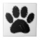 A black dog paw print cartoon style. Design with distressed effect applied to image. Product and gift idea for people that love dogs.
