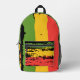 This Rasta/Reggae backpack designed to fit your style. It features a graphic Rasta crest on the front pocket and rough, rugged red, gold, and green Rasta stripes on this design for a unique appearance. The perfect gift for Back-To-School, Christmas, or a winter trip to the Caribbean!