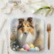 Rough Collie Dog with Easter Eggs Holiday Paper Plate