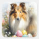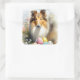 Rough Collie Dog with Easter Eggs Holiday Square Sticker