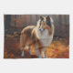 Rough Collie in Autumn Leaves Fall Inspire Tea Towel