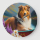 Rough Collie on a Paddle: A Scenic Adventure Large Clock