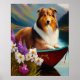 Rough Collie on a Paddle: A Scenic Adventure Poster