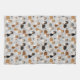Cute Rough Collie dogs sit and stand and rollover with sable, tri-colour, merle and white coats with scattered dog bones and pawprints pattern.